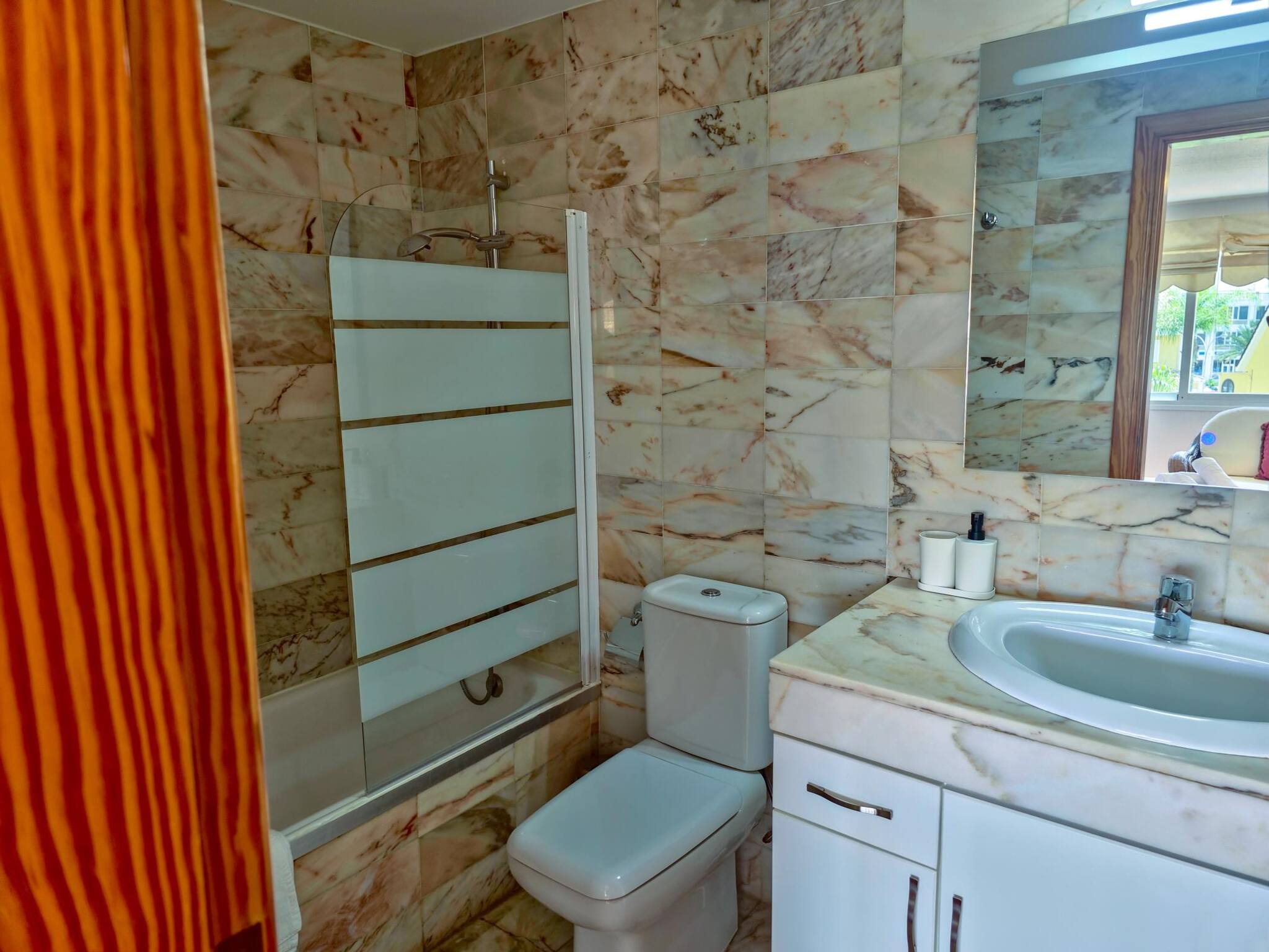 La VV está ubicada en un tranquilo complejo con piscina, a 700 metros de Playa de Las Vistas y a 1 km de Playa del Camisón, las mejores playas de Tenerife, y muy cerca de todo tipo de comercios, de grandes supermercados, como Mercadona (a solo 2 minutos a pie), y centros comerciales como Safari y Parque Santiago.