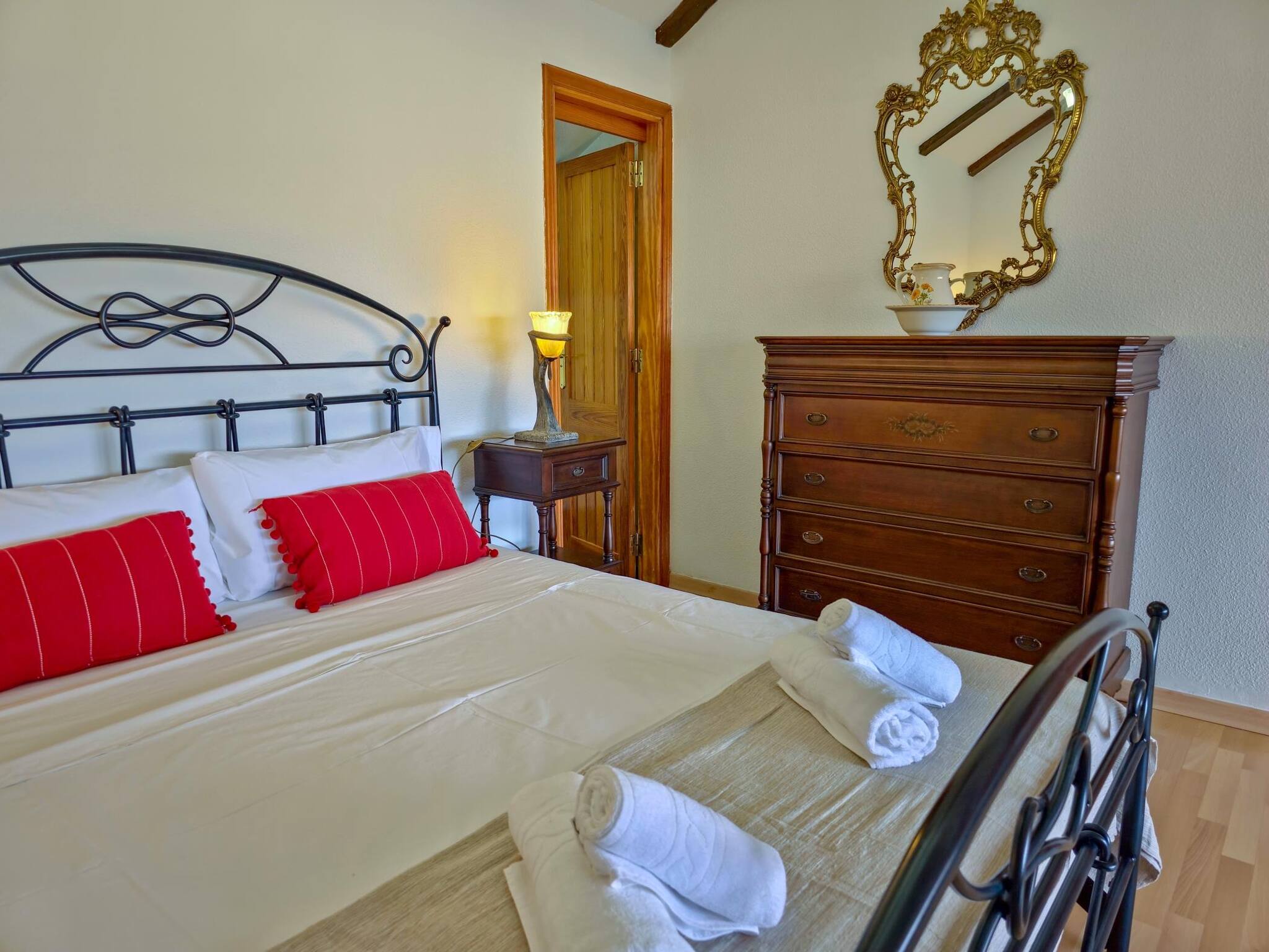 En la segunda planta podemos encontrar 3 habitaciones. Una habitación muy amplia, con cama de 180 y baño completo privado, y 2 habitaciones con camas individuales. Dispone de un segundo baño completo.