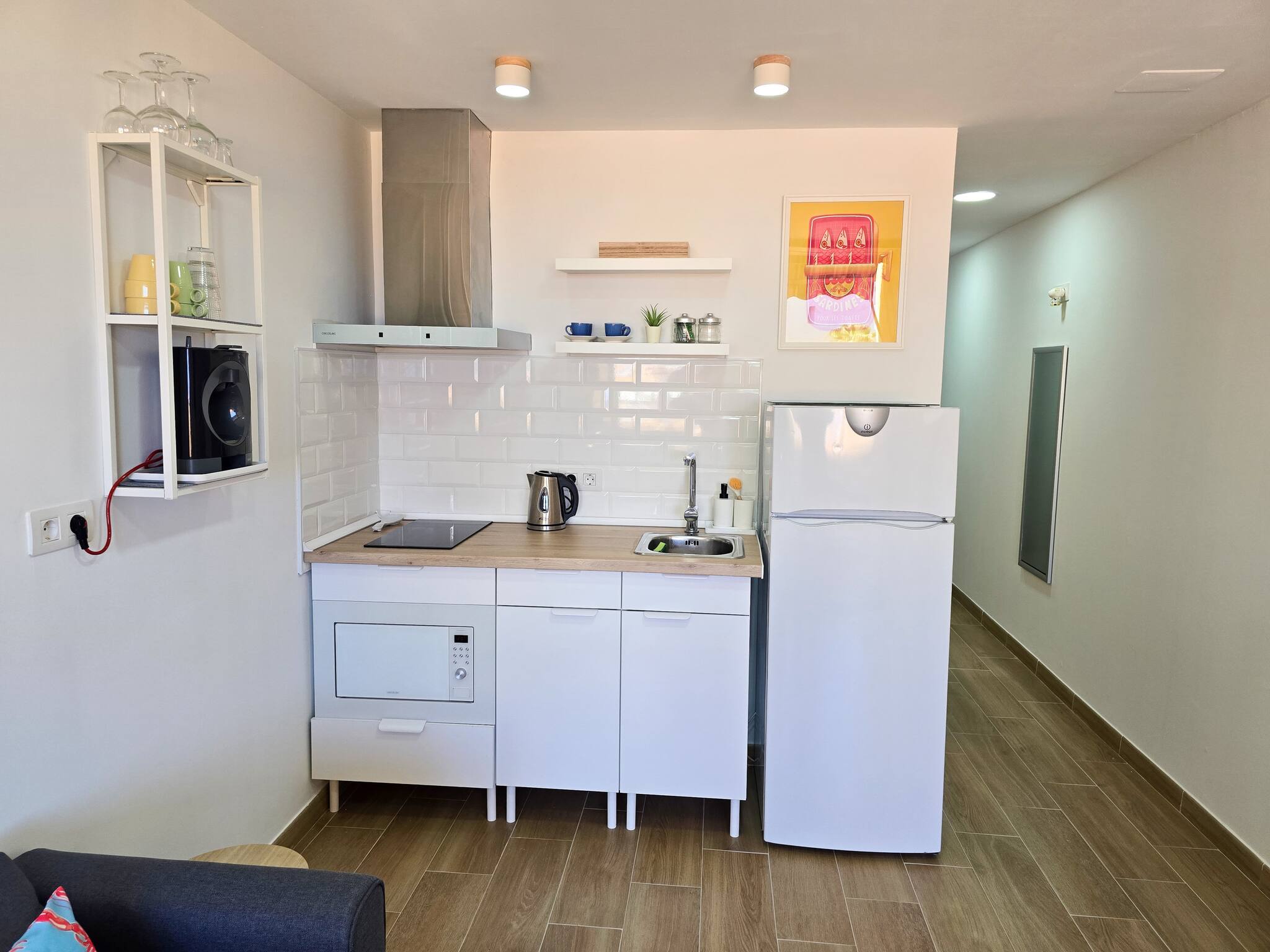 La Vivienda Vacacional consta de un espacio amplio con cocina americana, con un sofá y una cama de matrimonio, todo decorado con muy buen gusto. Dispone de un baño con plato de ducha y lavadora. Y de una preciosa terraza con un pequeño sofá, mesa y sillas, donde podrá disfrutar de vista a la piscina y al mar, con toda la tranquilidad