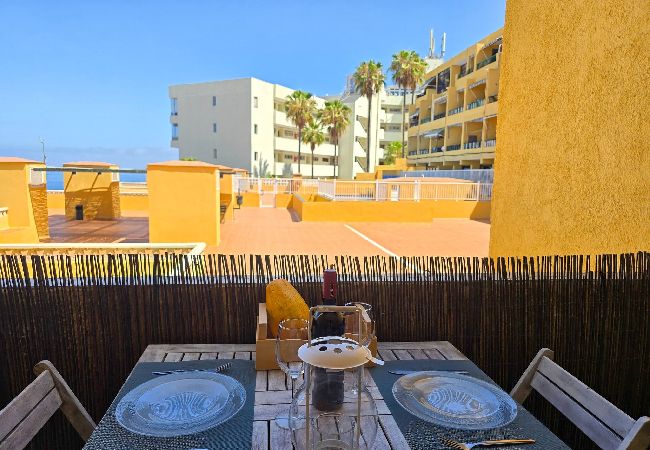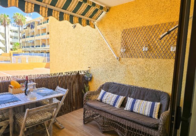 Preciosa Vivienda Vacacional para 2 personas, con balcón y fantástica vista de mar, wifi y piscina, a 100 metros de Playa La Arena, Puerto Santiago.