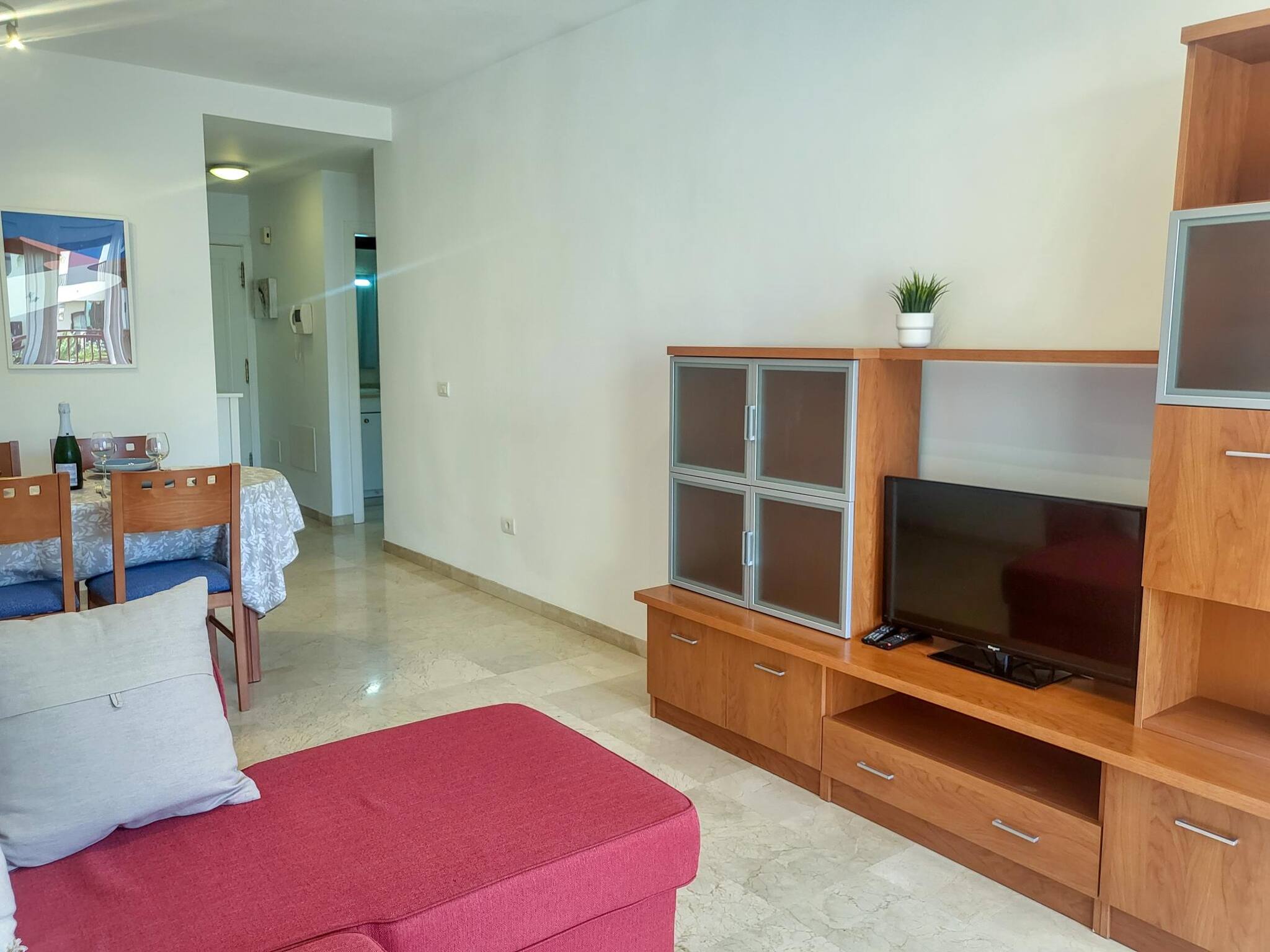Le logement est situé dans un complexe avec 3 piscines, dont une pour enfants. Le complexe est très calme, avec une zone de jardin, à 600 mètres de la mer et de la plage La Arenita, une plage rocheuse, où vous pourrez trouver de fantastiques bars de plage. Près du complexe, vous trouverez une grande offre de restaurants, supermarchés, cafés et tous types de magasins. Le complexe dispose d'un parking couvert.