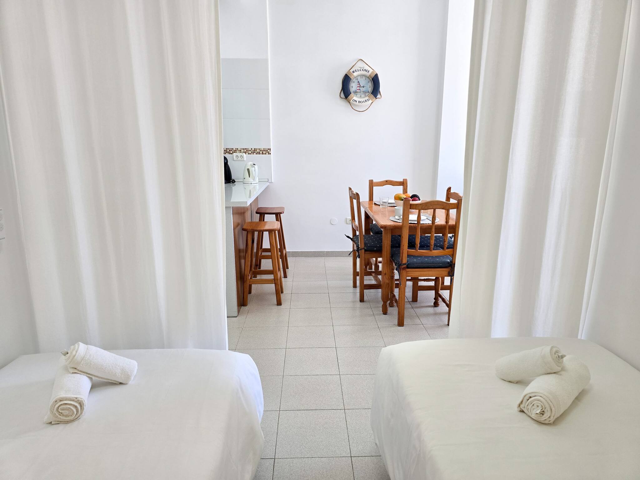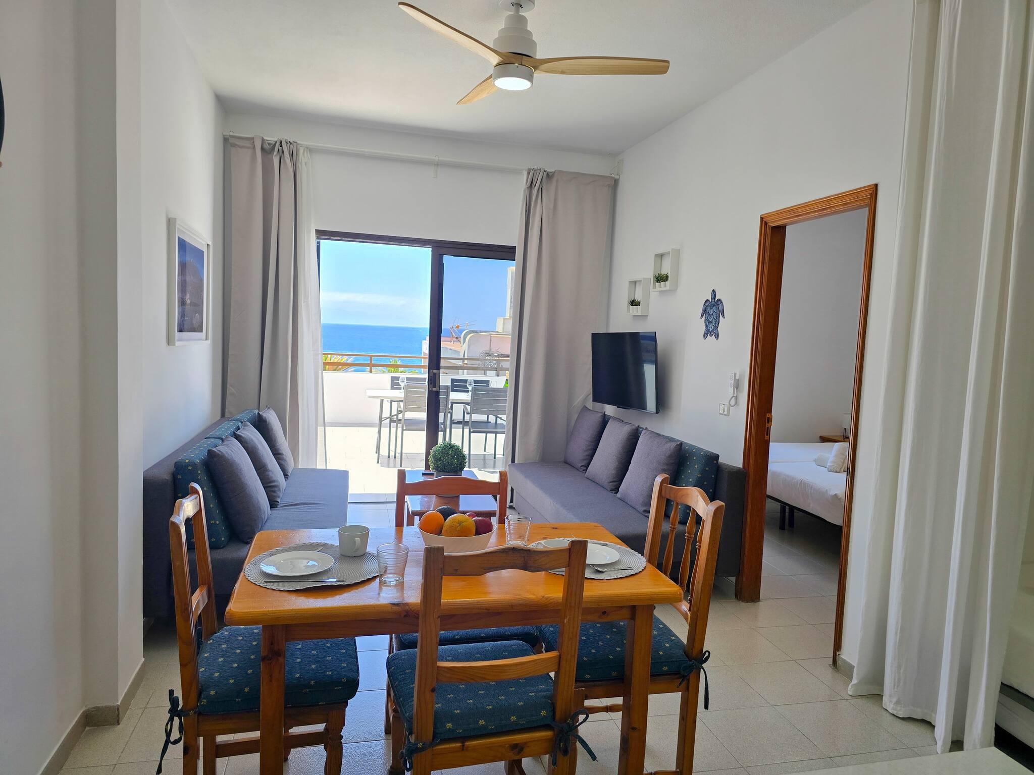 Il comprend un salon avec une cuisine américaine, une chambre avec deux lits individuels et un espace réservé avec deux autres lits individuels. Il dispose également d'une salle de bain et d'une terrasse avec une zone de repas et des hamacs où vous pourrez profiter d'une magnifique vue sur la mer et le soleil de Tenerife, dans tout le calme.