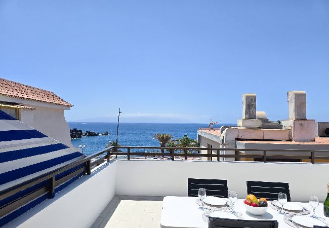 Le logement est situé dans un complexe à quelques mètres de la plage, avec une grande piscine, une piscine pour enfants et une zone de solarium offrant une vue impressionnante sur la plage de La Arena et l'île de La Gomera.