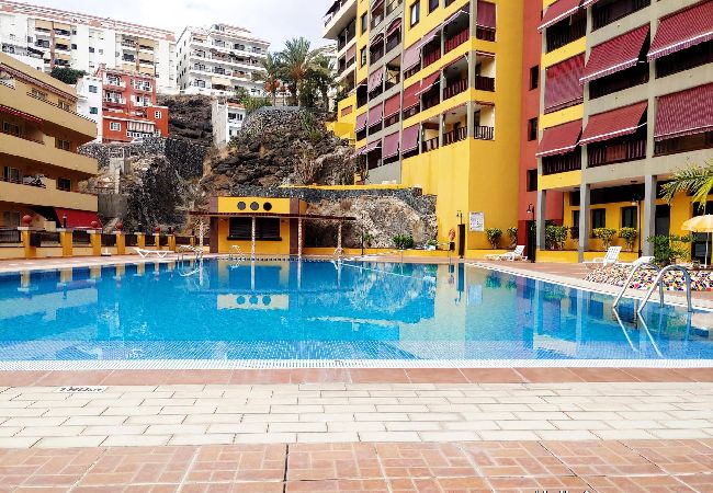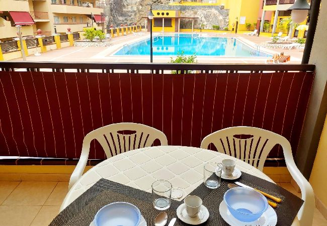 Belle et confortable logement de 2 chambres, piscine, balcon, wifi, vue mer, 50 mètres de la plage La Arena, Puerto Santiago.
