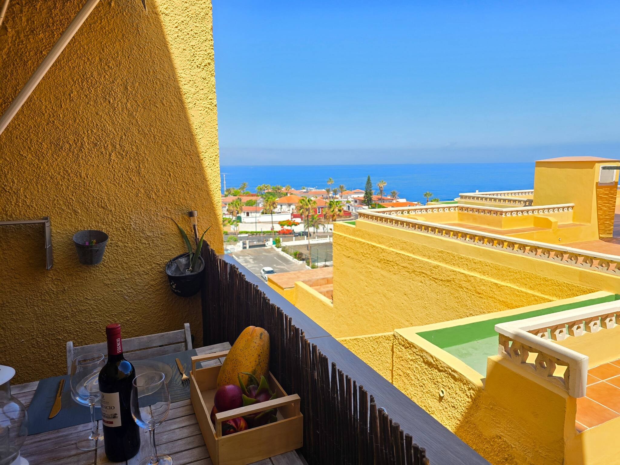 Bel Logement pour 2 personnes, avec balcon et vue fantastique sur la mer, WI-FI et piscine, à 100 mètres de Playa La Arena, Puerto Santiago.