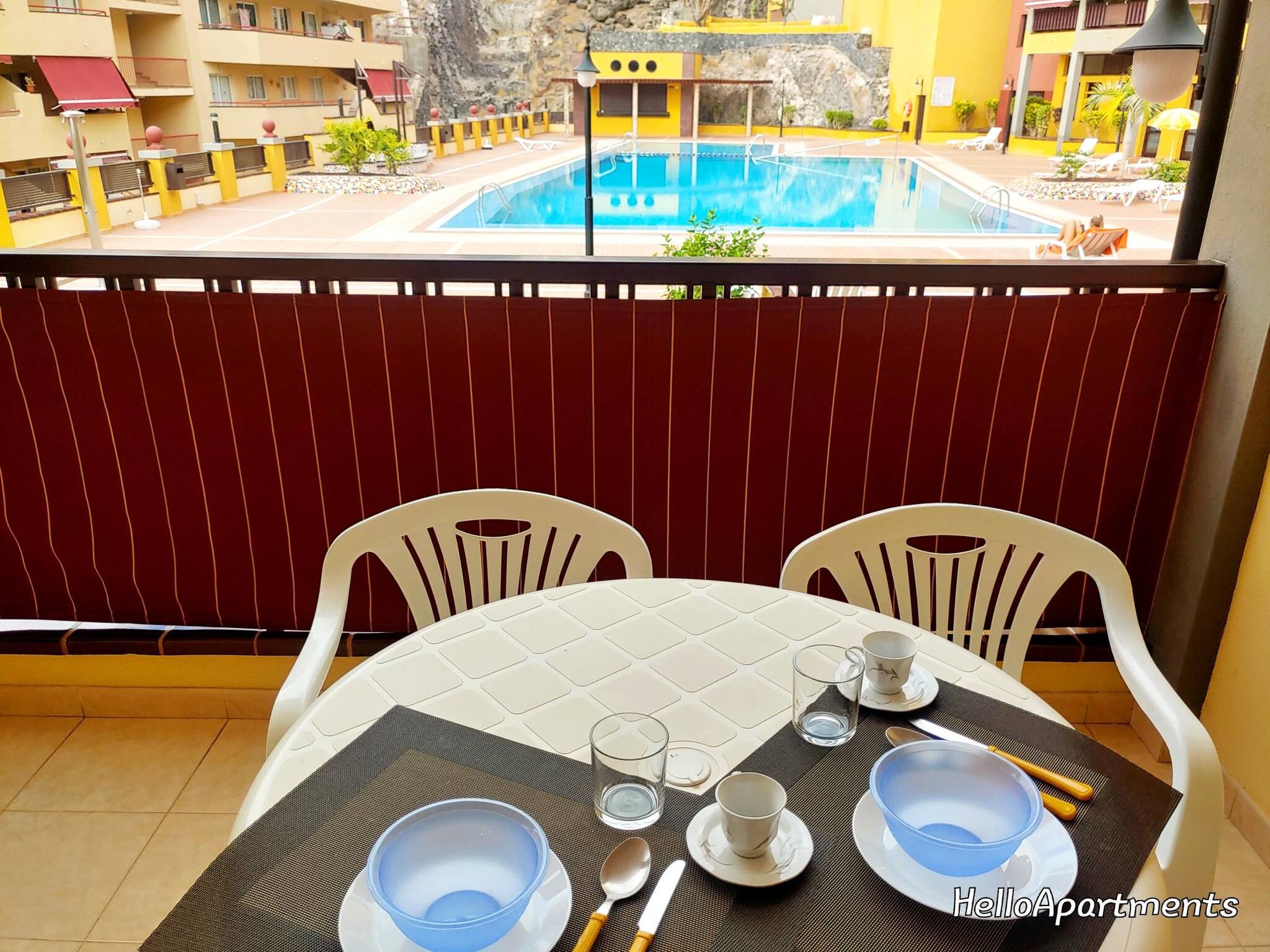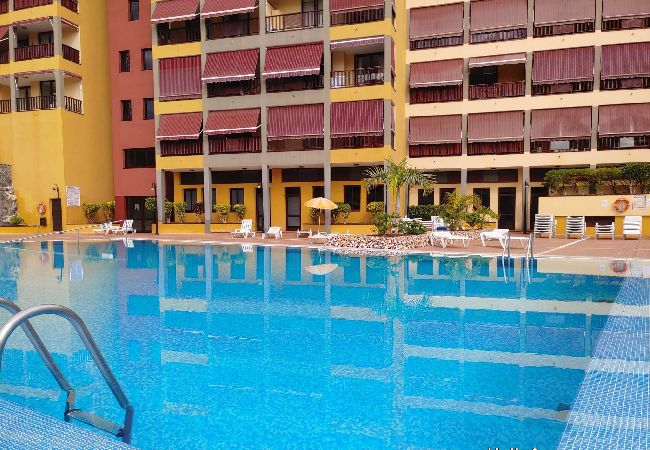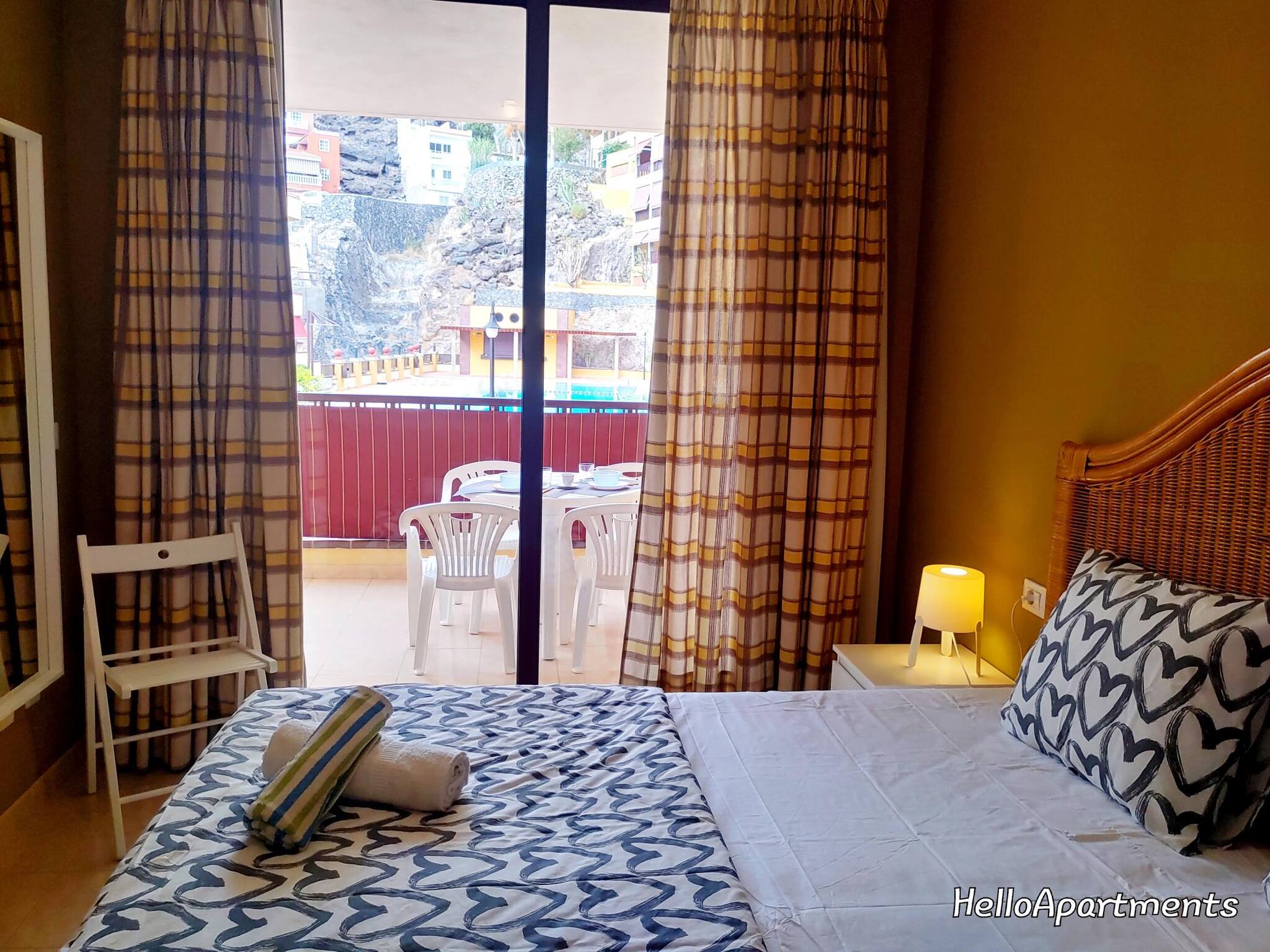 Bonito e aconchegante Alojamento Local T2 com piscina, varanda, WiFi, vista mar, 50 metros da praia La Arena, Puerto Santiago.