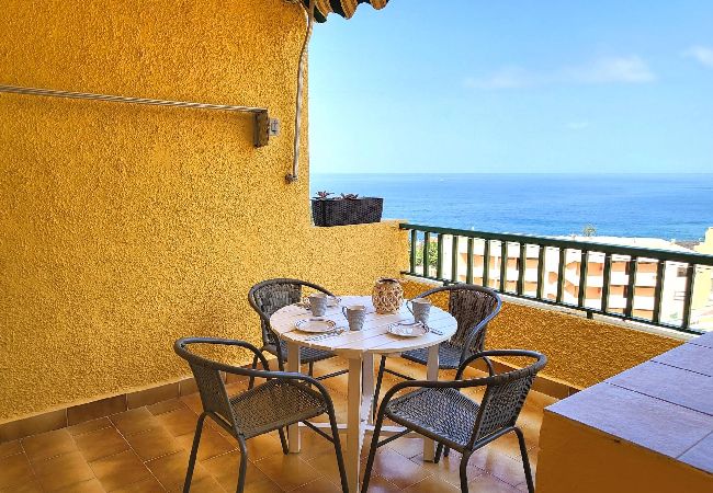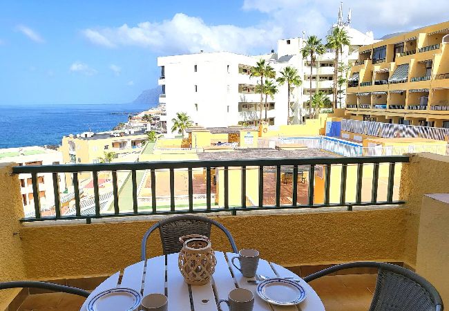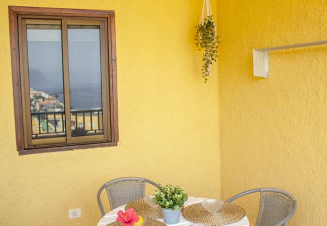 Bonito e aconchegante Alojamento Local T2 com piscina, varanda, WiFi, vista mar, 50 metros da praia La Arena, Puerto Santiago.