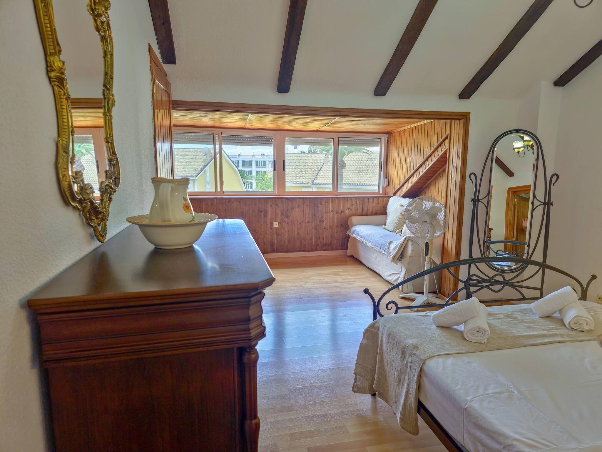 No terceiro andar, há um quarto grande com uma cama de 150 cm e uma casa de banho privativa. Os 2 quartos duplos têm vista para o jardim e para a piscina do complexo.
