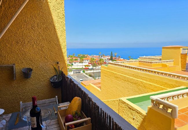 Bonito Alojamento Local para 2 pessoas, com varanda e fantástica vista de mar, WI-FI e piscina, a 100 metros da Playa La Arena, Puerto Santiago.