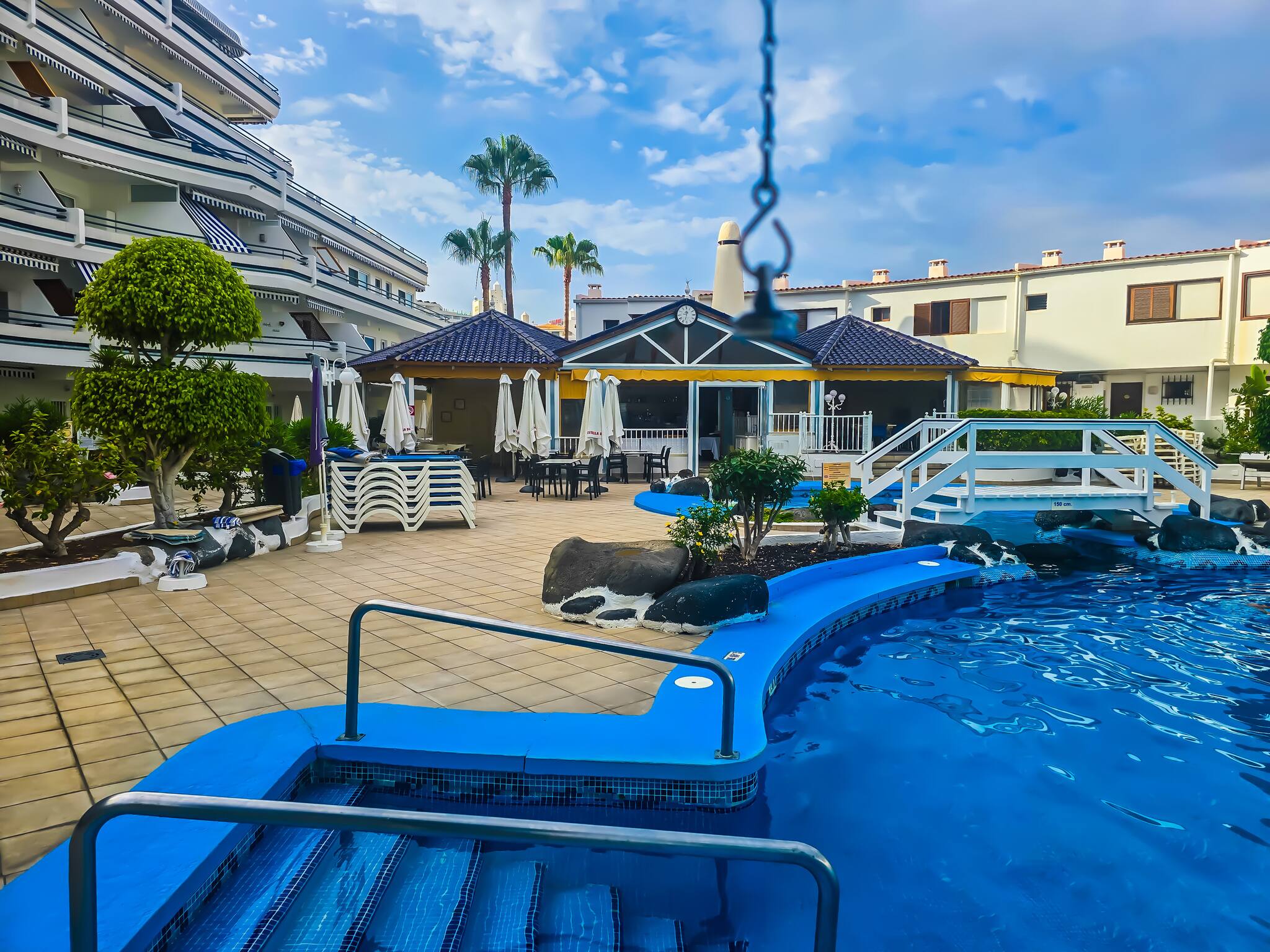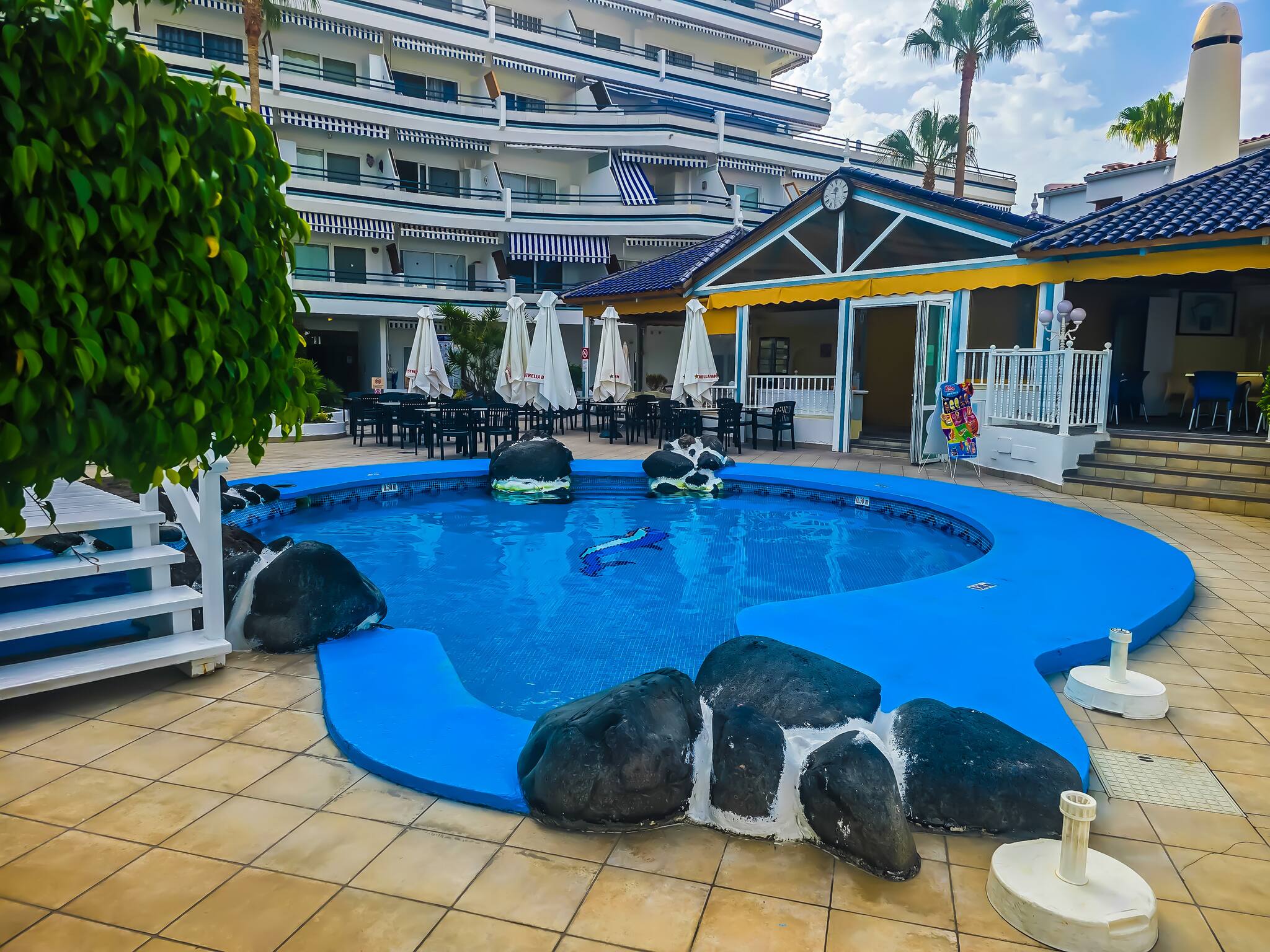 Its location is unbeatable: just 50 metres from La Pinta Beach, 200 metres from San Eugenio and with a Mercadona supermarket 250 metres away. You can enjoy nearby restaurants and cafés, such as Garden Atlantis, just 10 minutes away. Siam Park is only 3 kilometres away, ideal for a day of fun.